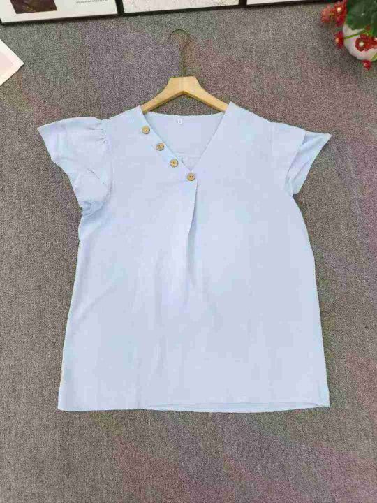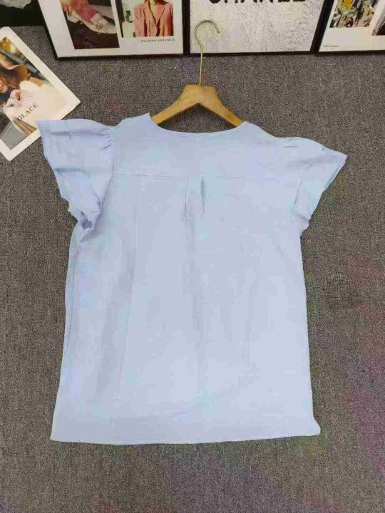 女士荷叶袖V领短袖 数量35件左右 尺码S--2XL 独立包装 货品干净整洁