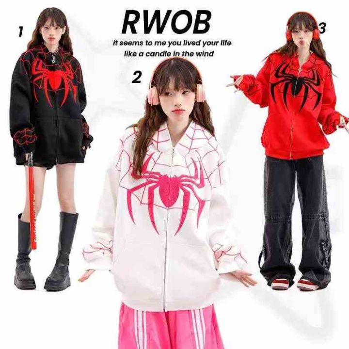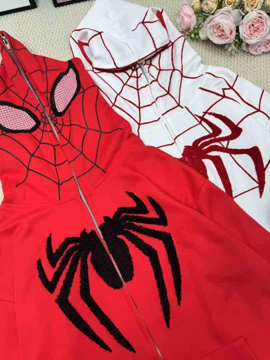 原创美式蜘蛛刺绣拉链开衫男女情侣款卫衣外套.1-4码...