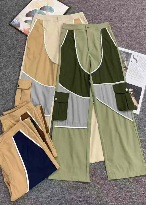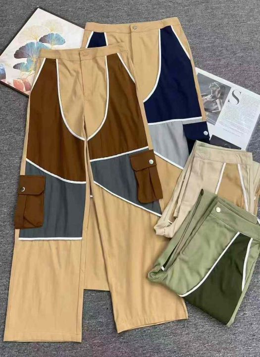 新款外贸多口袋 拼接款工装裤宽松阔腿,多口袋工装元...