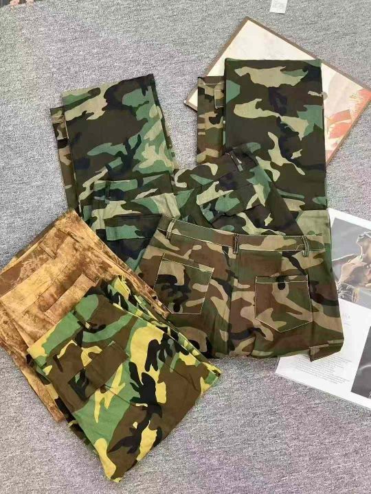 新款外贸多口袋工装裤宽松阔腿,迷彩多口袋工装元素,...