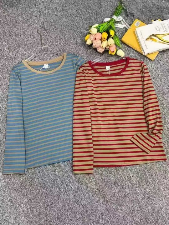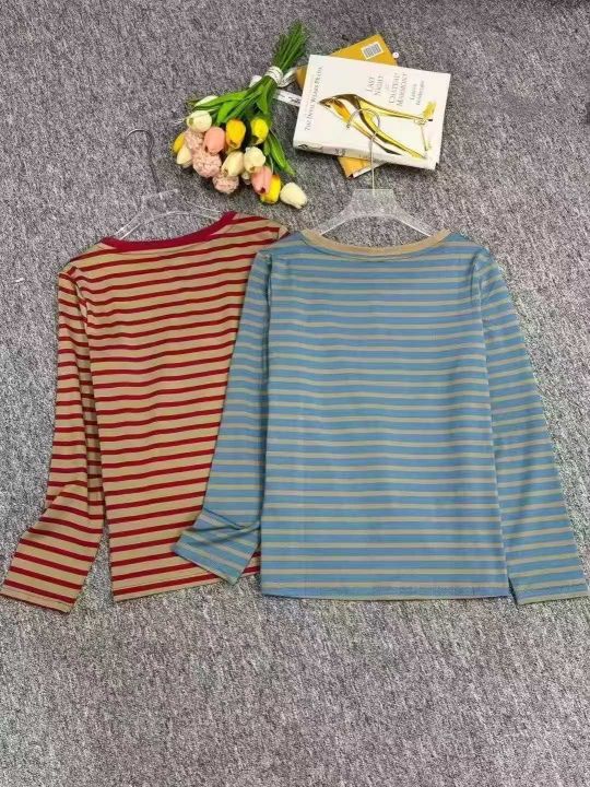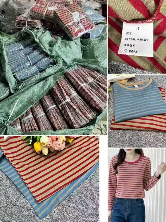 2000件工厂新货高品质纯棉修身条纹长袖T恤,独立包装...