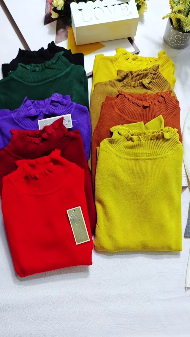 秋冬新款针织衫 女装韩版 百搭半高领毛衣 木耳边长袖修身打底衫 加厚款 面...