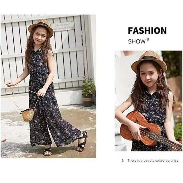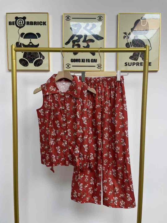 天猫在售款500套左右高品质中大童夏季中国风碎花阔腿裤两件套,图片两款(红色款少)码数100-160,独立包装