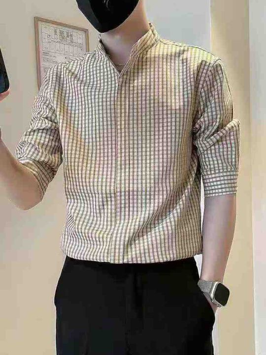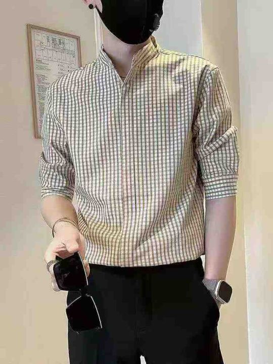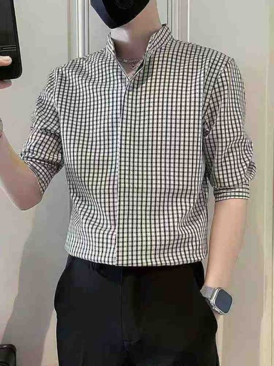 夏秋新款男士格子潮牌痞帅半袖衬衫,独立包装带吊牌,...