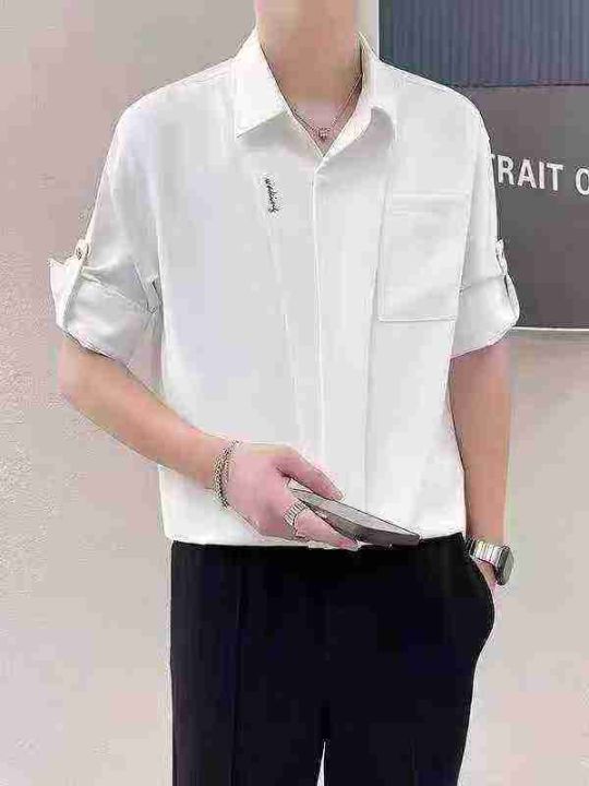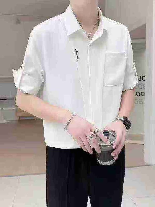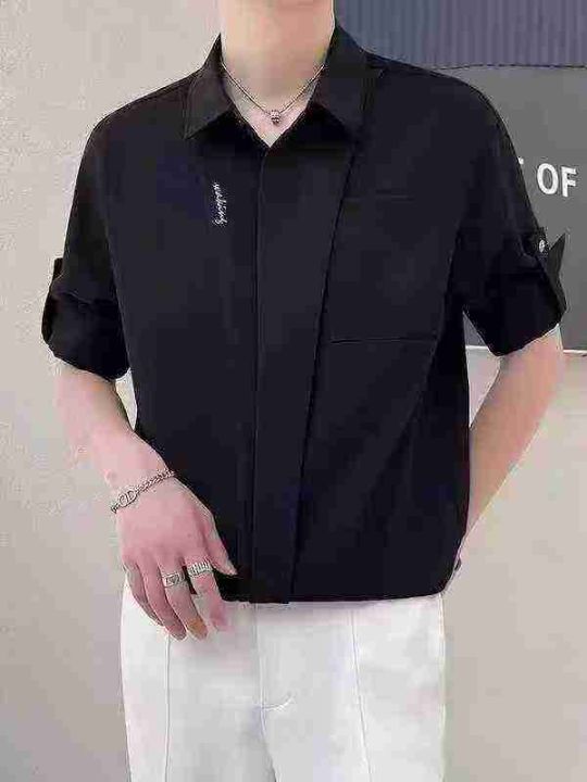 夏季新款港风宽松百搭小众设计感趣味男士衬衫,独立包...