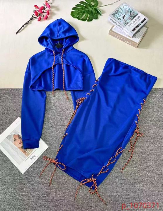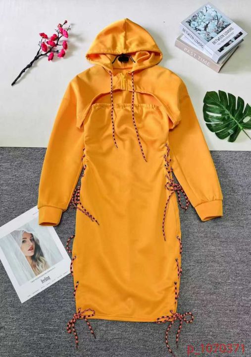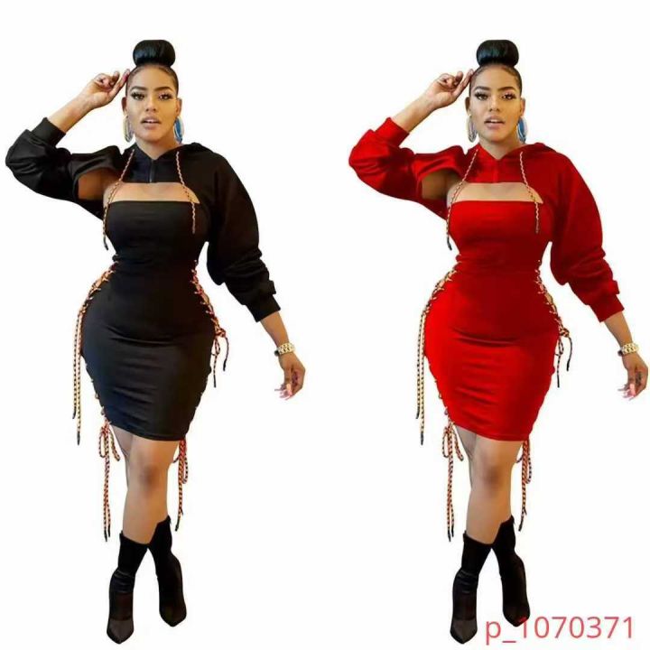 外贸时尚时装纯色镂空抽绳连帽卫衣连衣裙两件套,数量:278套,码数:S-2XL,整款多色,品质好,有独立包装。 _@_@