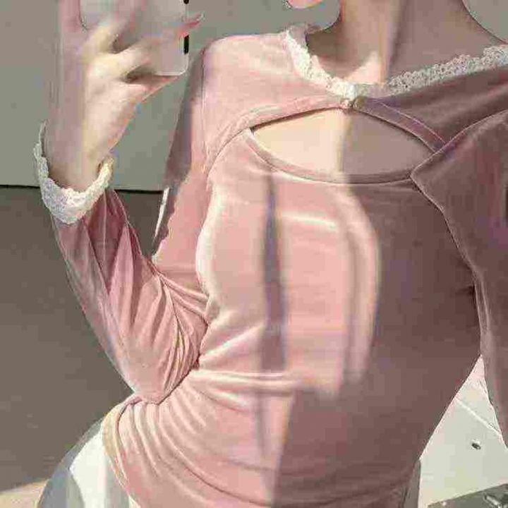上新全清:10.8一件法式甜美温柔风粉色镂空长袖上衣,[爱心]50件左右,款号...