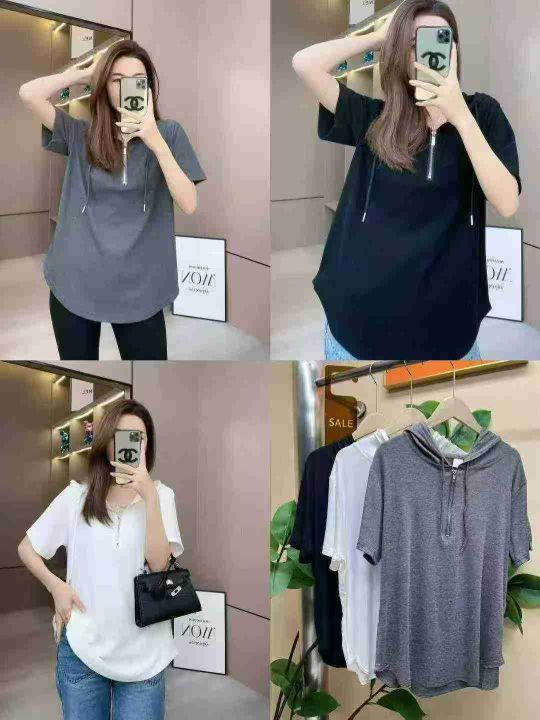 复古新款宽松洋气盘扣T恤大码女装 ,数量:106件,码数:(1-4)S-M-L-XL,...