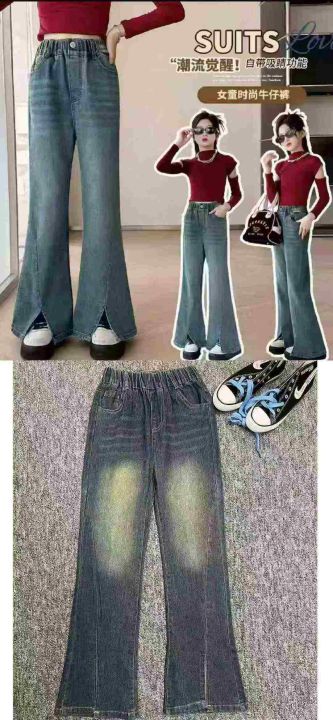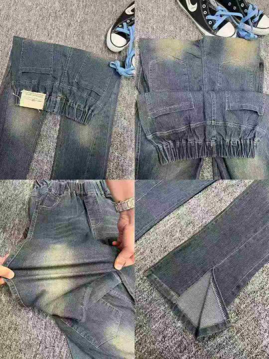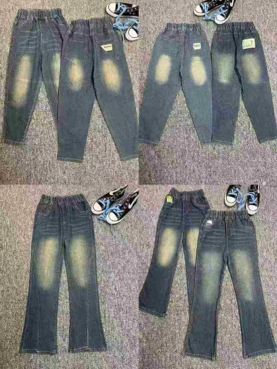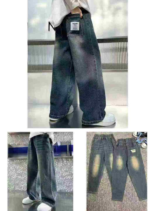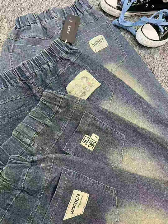 高品质青少年牛仔裤,高弹力洗水软牛仔面料,内里包边,数量3550条左右,码数140-180码,整首齐码,独立包装吊牌,一捆一手码,3个款,多图案,阔腿款,开叉款,喇叭款,阔腿款最多(3300条左右),可以挑款出➕1元,网络图供参考大概款式!
