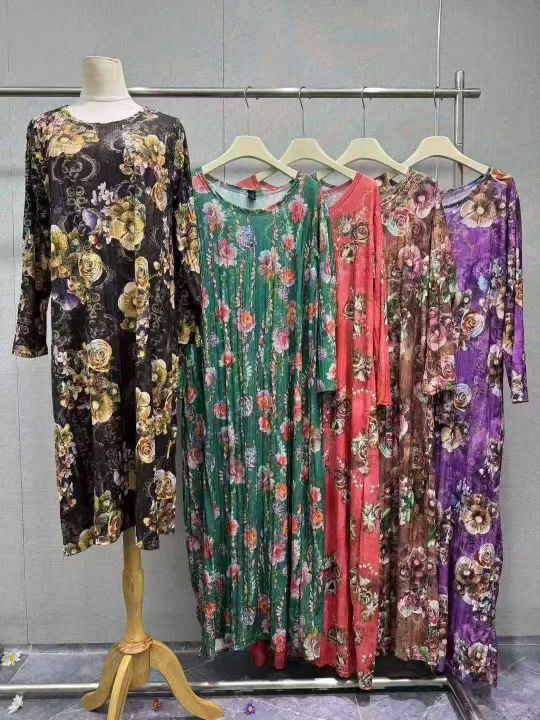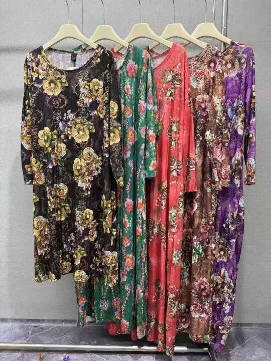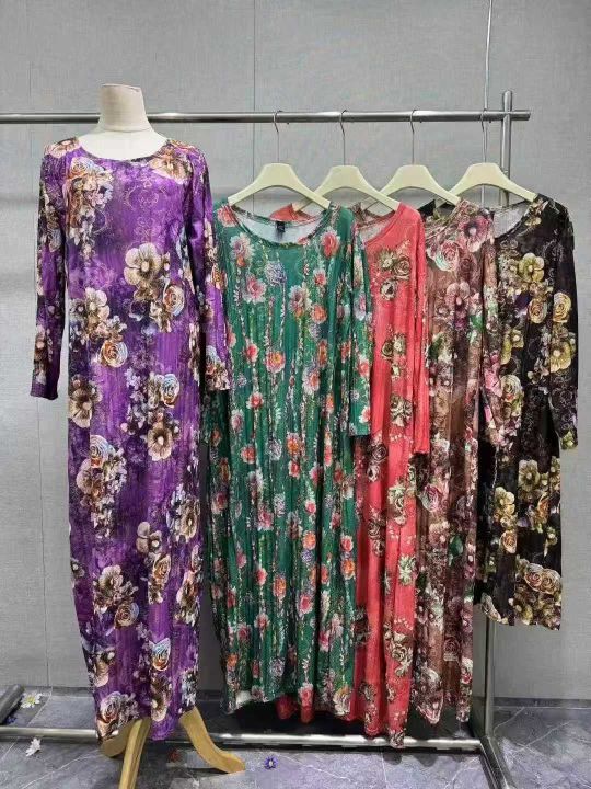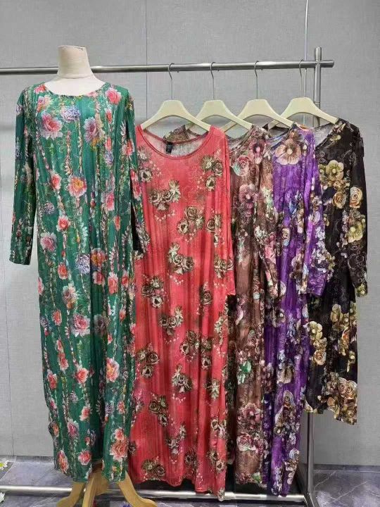 清2500条,高端大码女装遮肚显瘦纯棉连衣裙复古加肥加大,大摆老年人沙滩裙,裙长130厘米。