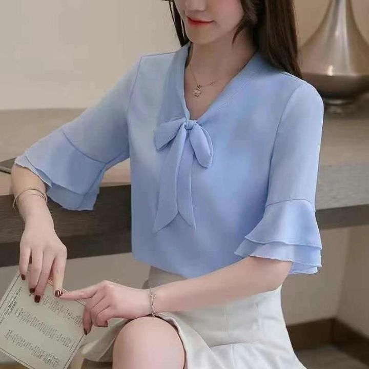 121件春夏新款雪纺衫韩版宽松喇叭袖雪纺上衣!尺码L-4XL,独立包装!全清8.8 不分货