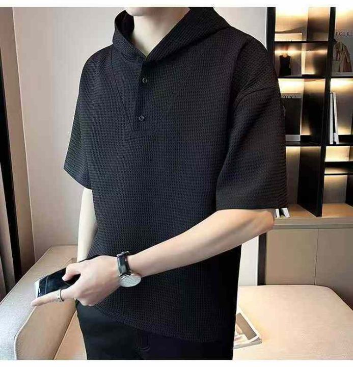 男士新款弹力高级感夏季小众设计师款百搭宽松显瘦连帽T桖,独立包装带吊牌,码数M-3XL码, 445件,全清5.9元超低价秒杀!