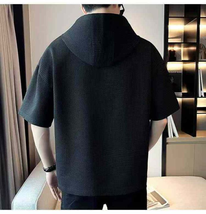 男士新款弹力高级感夏季小众设计师款百搭宽松显瘦连帽...