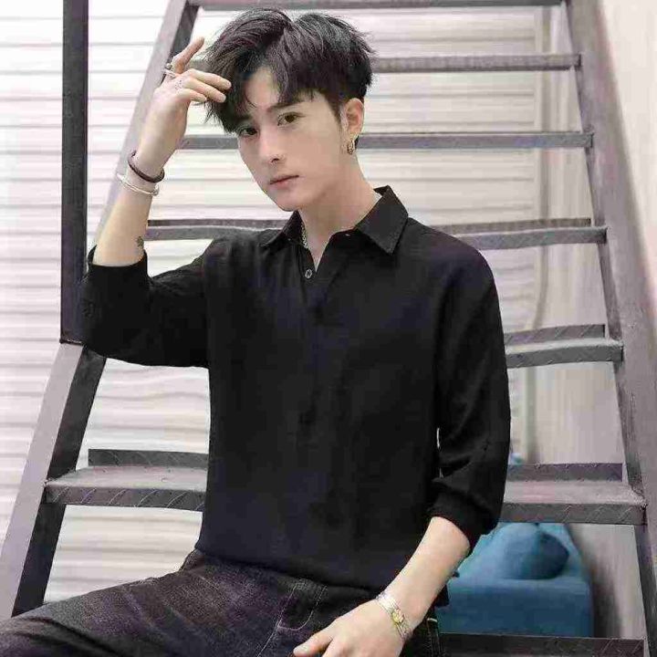 夏秋季新款宽松男士韩版潮流港风7分袖衬衫,独立包装...