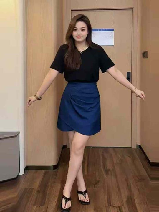 夏季新款胖妹妹弹力设计款牛仔半身裙+宽松纯棉大版T桖...
