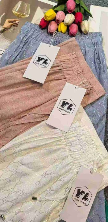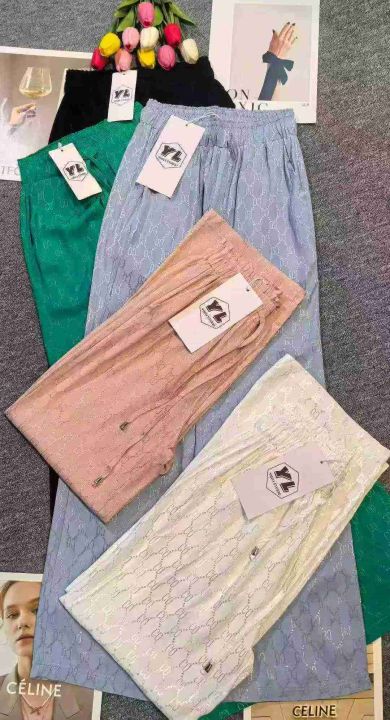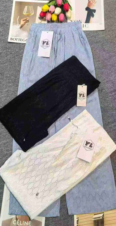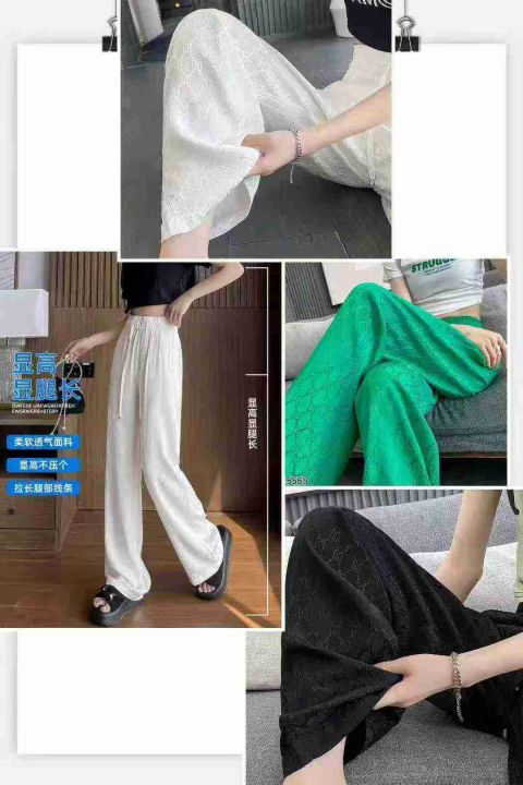 品牌冰丝提花直筒窄版阔腿裤,[爱心]70件左右(黑,白,浅蓝三色为主)尺码XS-2XL,穿70-140斤,万佳档口货,原包装瑕疵,[庆祝]实体店品质