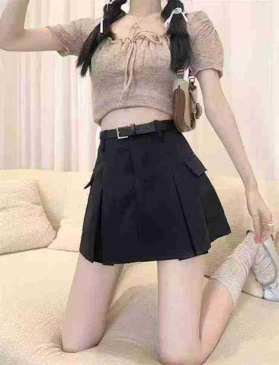 设计感小众高腰口袋百褶工装半身裙 数量140件 尺码S--XL 纯棉面料 带内衬防走光 自带皮带 独立包装 货品质量质佳!