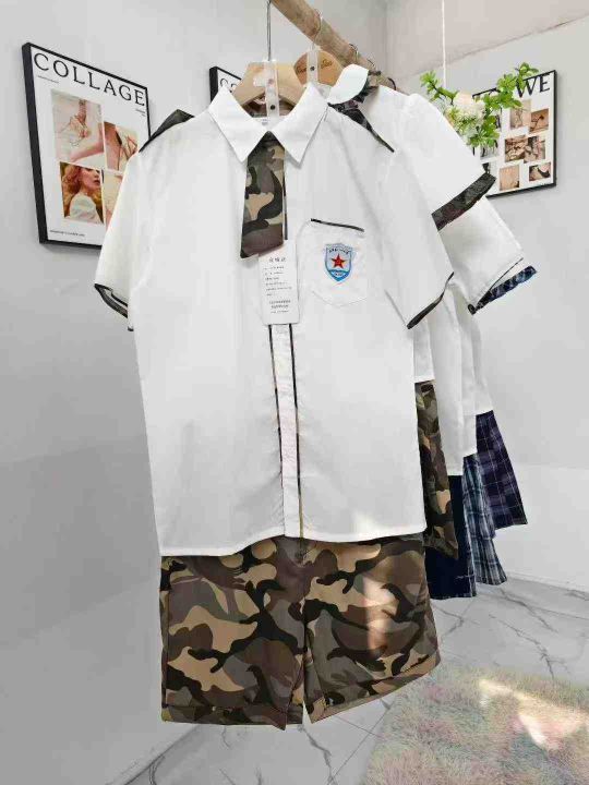 5200套夏季学生校服整款套装,码数125-195,独立包装,大货干干净净,码数比例齐全,男女比例均匀,大部分短裤短裙套装,迷彩套装少,可挑款走,每个款上千套,全清5.5分货+0.5