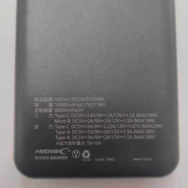 出口日本订单三元电芯足1万毫安充电宝!PD 22W ,USB 2...