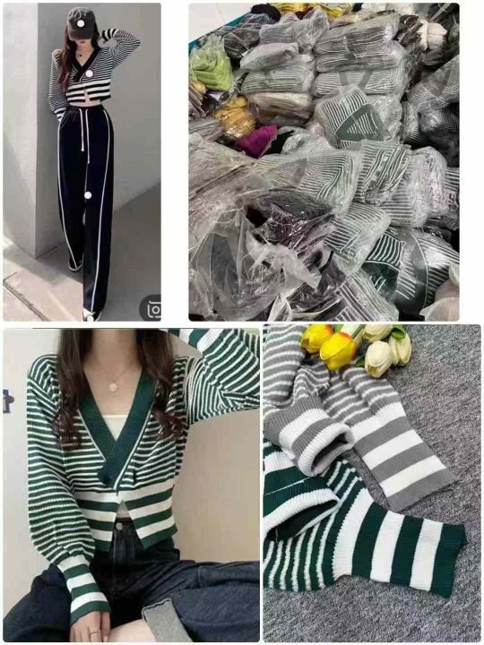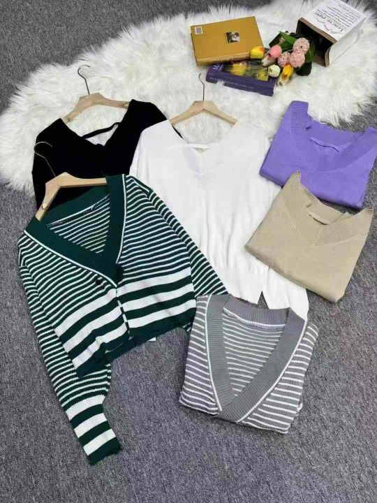 800件复古条纹长袖针织外搭开衫韩系V领纯色套头打底针织上衣,独立包装,均码,图片一款多,全清价4.8元,分货加1