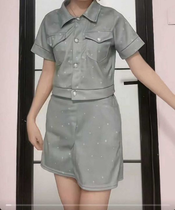 1270套时尚靓妹女装夏季休闲套装裤裙 上衣纽扣解 半松紧腰裤裙有口袋,单款单色 码数2-6码(M-3XL)独立包装。