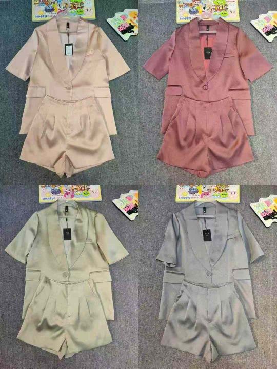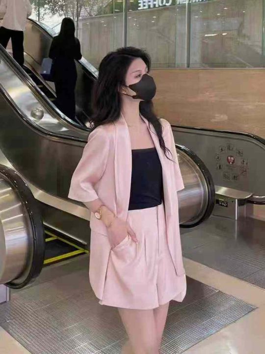 470套杭州FXQ品牌 韩版夏季新款设计感轻奢冰感短袖西装外套短裤两件套,XS-S码 XS为主 XS码穿100斤以内,带吊牌带衣架防尘袋 箱装,品质很好!