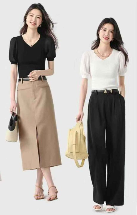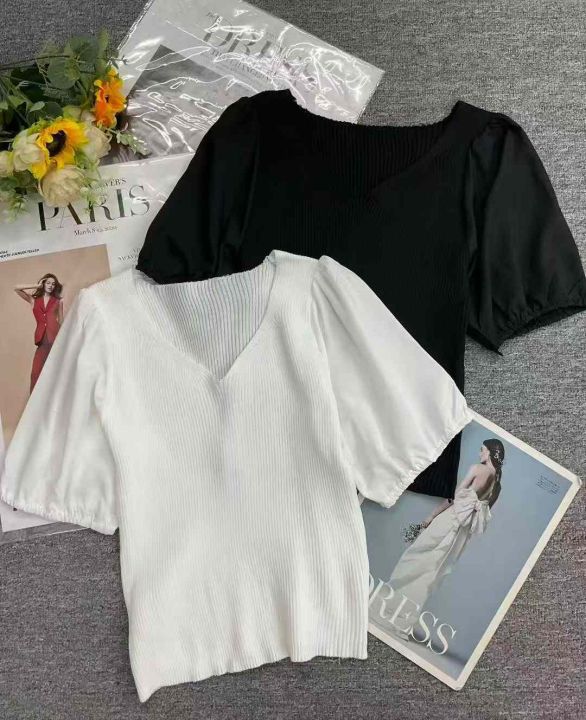 夏季新款法式复古雪纺拼接泡泡袖冰丝短袖针织小衫,独立包装,2个款,均码面料柔软舒适弹力大,520件,全清5.9元超低价秒杀!分货加一!