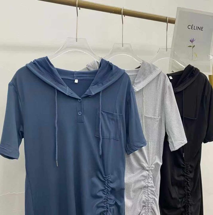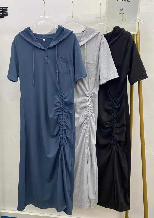 连帽连衣裙64件7.5,面料柔软有弹力,褶皱收腰,下摆...