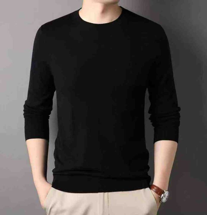 秋冬新款高品质大码男士商务净版简约天丝圆领套头毛衣...