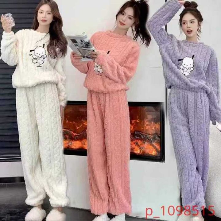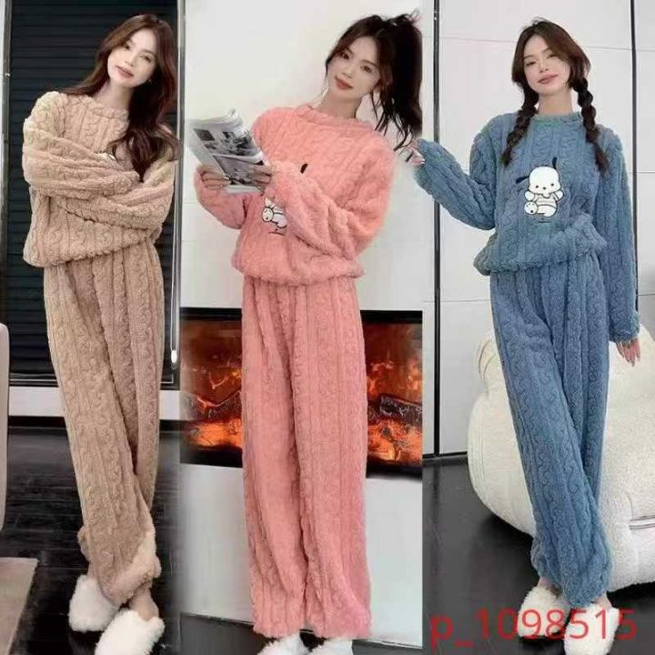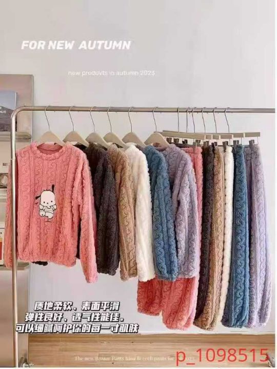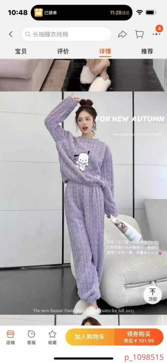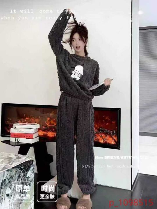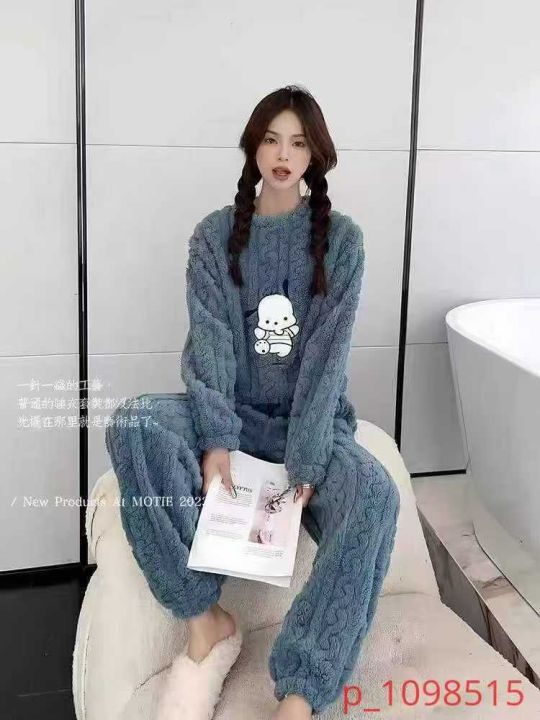 珊瑚绒睡衣套装女哈帕狗提花保暖卡通可爱加绒加厚可外穿家居服,50套多色混配26元! _@_@