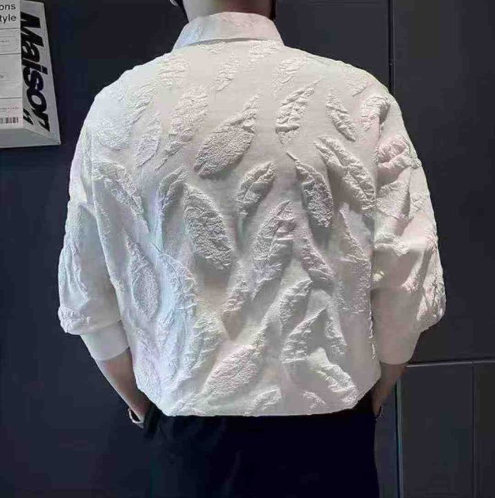 夏秋新款男士设计感提花polo领潮流潮牌衬衣,独立包装...