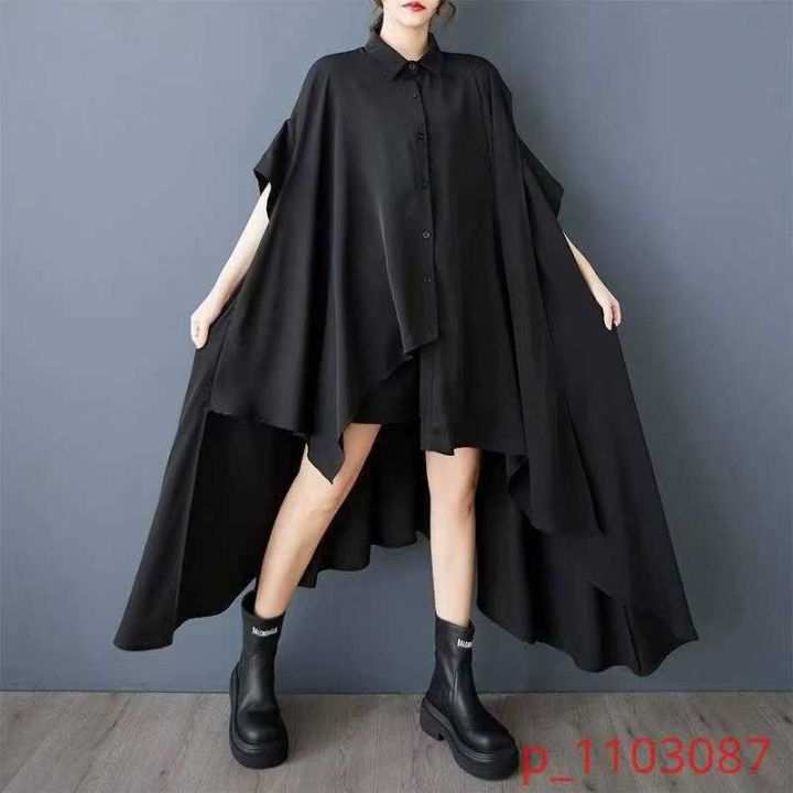 欧美时尚新款暗黑风不规则衬衫时尚百搭中长款衬衫裙,数量:155件,码数:S-2XL,整款多色,品质好,有独立包装。 _@_@