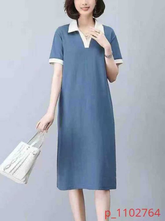 6.9元便宜清仓新款POLO翻领连衣裙,大版宽松遮肉版型...