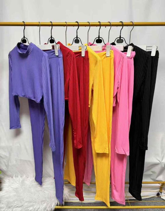 欧美跨境辣妹显瘦纯色短款长袖长裤两件套,数量169件,码数:S-3XL,整款多色,高弹力,品质好,有独立包装。