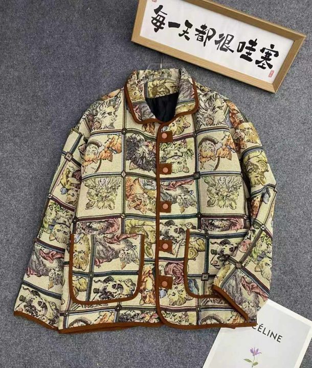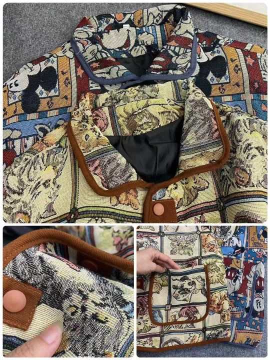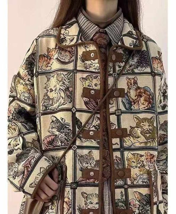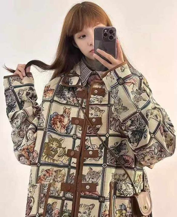 复古猫咪提花夹克外套124件13.8,有内衬,双口袋,百...