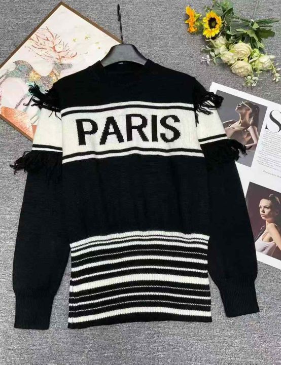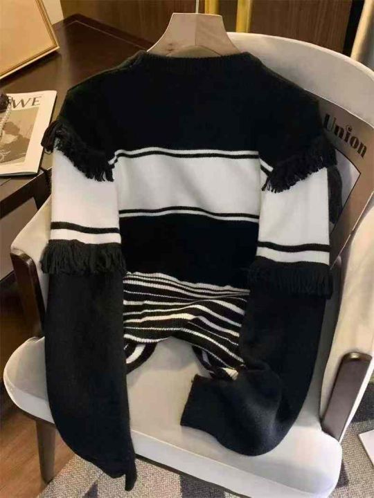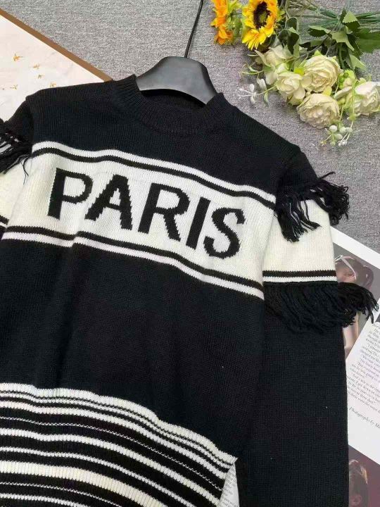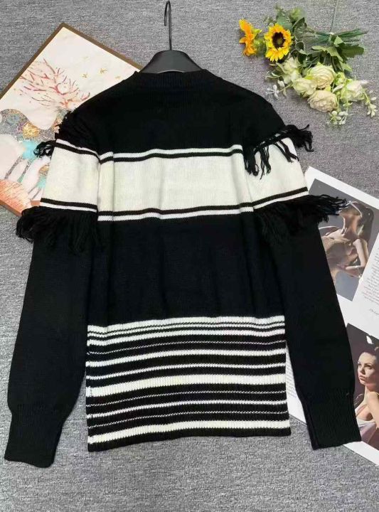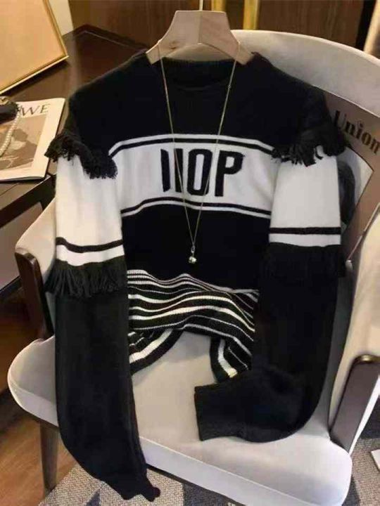 捡漏款,秋冬新款宽松慵懒风字母提花拼色条纹设计款套头毛衣,独立包装,均码面料软糯厚实,99件,全清6.9元超低价秒杀!