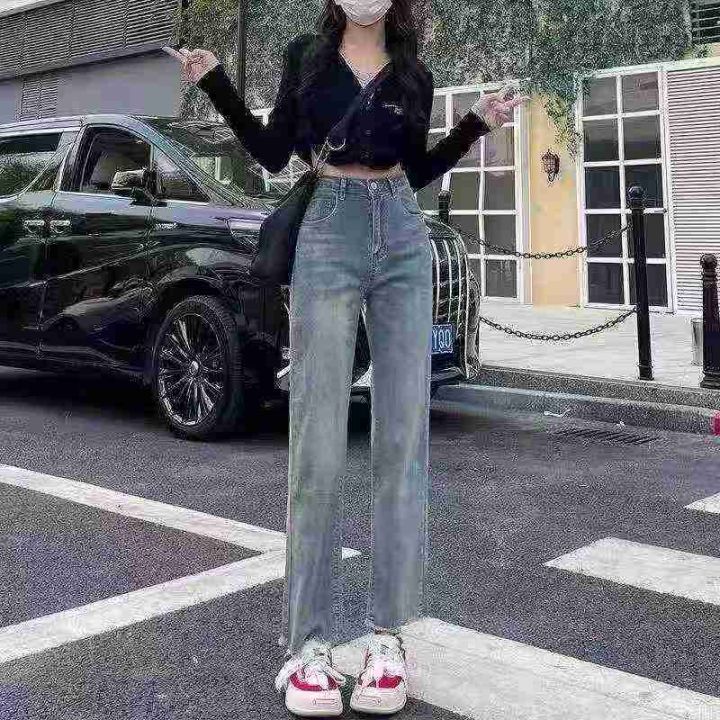 ☕️高弹力直筒牛仔裤女新款小个子高腰显瘦九分毛边烟...