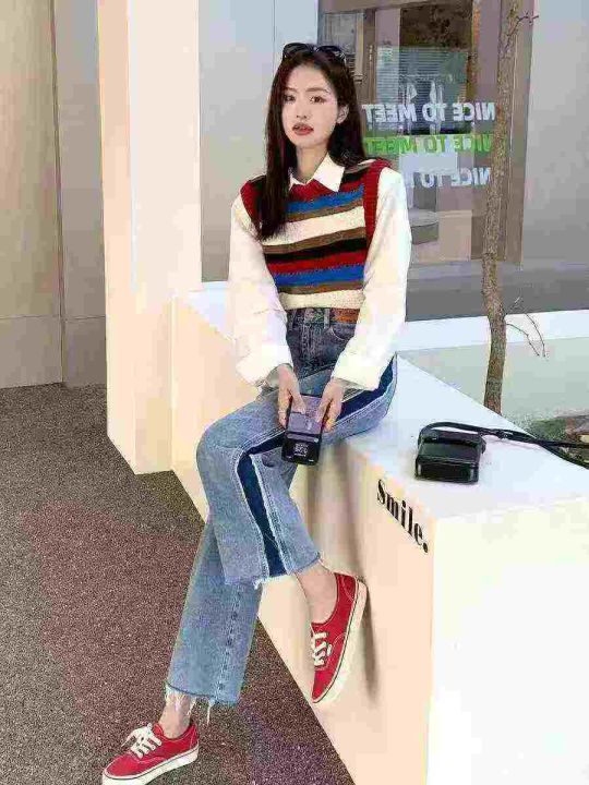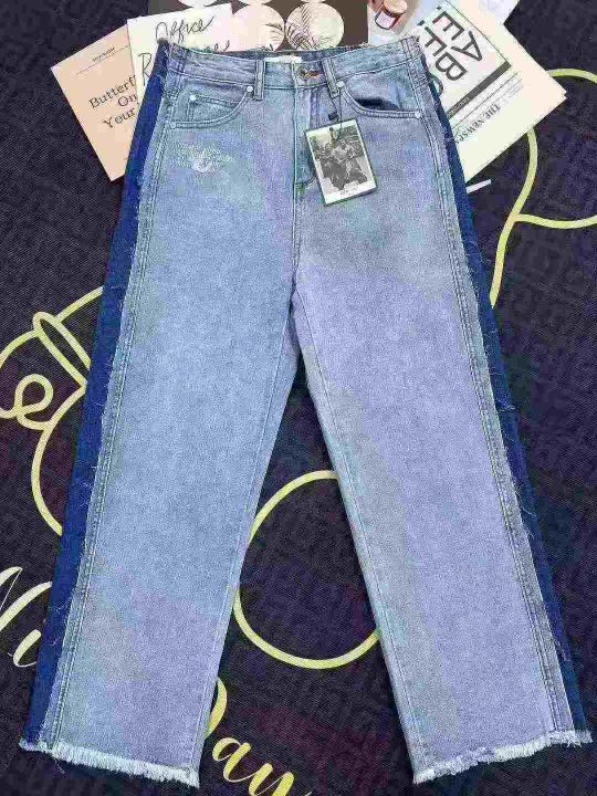 撞色毛边阔腿牛仔裤☕️260条全清11.8元,码数S到XL,...