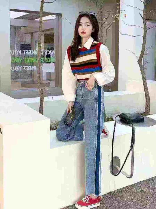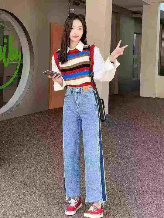 撞色毛边阔腿牛仔裤☕️260条全清11.8元,码数S到XL,图9有码数清单,独立包装,网红夏季新款高腰显瘦宽松直筒牛仔裤子