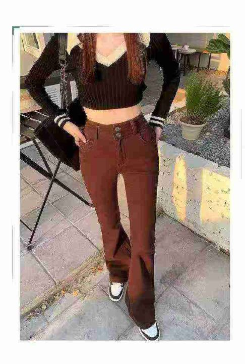 ☕️咖色高弹力喇叭牛仔裤女高腰显瘦弹力修身马蹄阔腿...