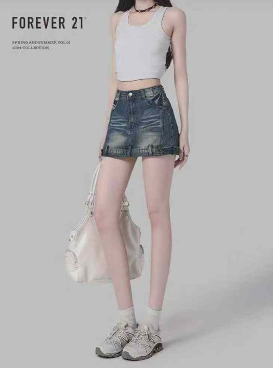 夏季新款辣妹风复古时髦百搭防走光洗水棉牛仔短裙,独...
