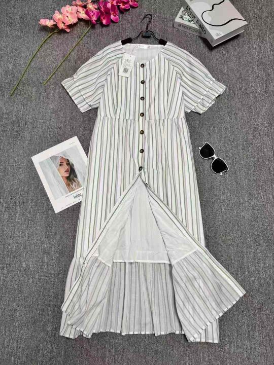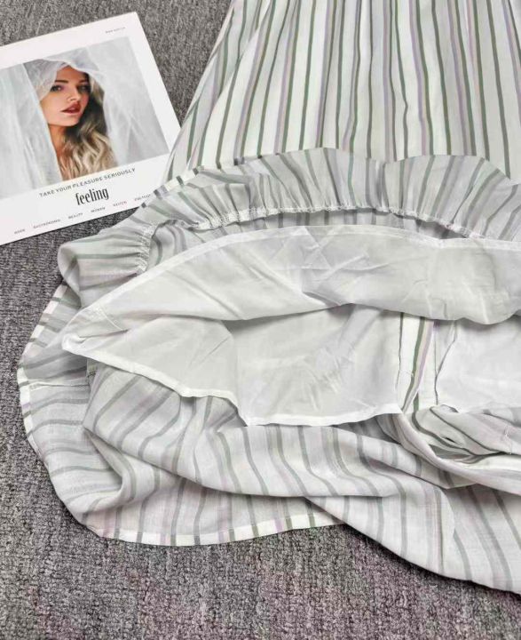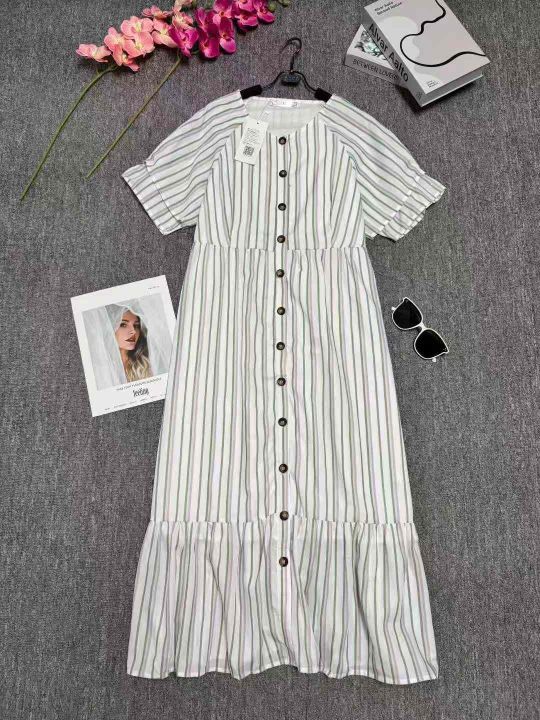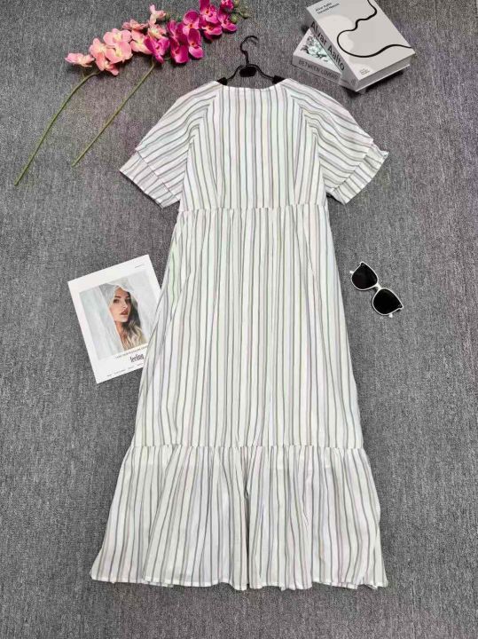 ⭐⭐120件法式复古条纹衬衫小众泡泡袖收腰显瘦鱼尾长裙连衣裙,码数SML,有内衬,品质好,独立包装带吊牌,全清10.8元!