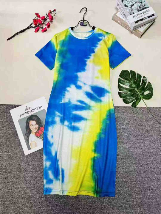 欧美时尚辣妹扎染紧身短袖连衣裙,数量:342件,码数:S-3XL,整款三色,高弹力,品质好,有独立包装。