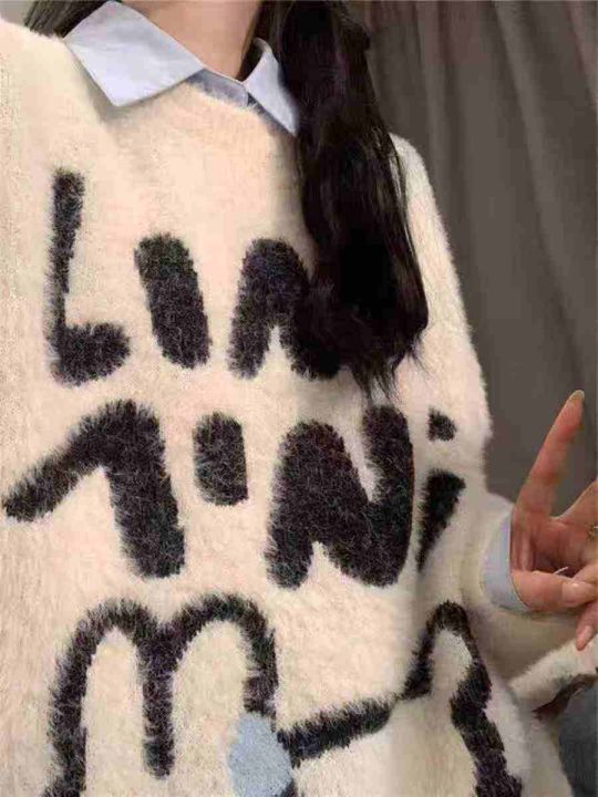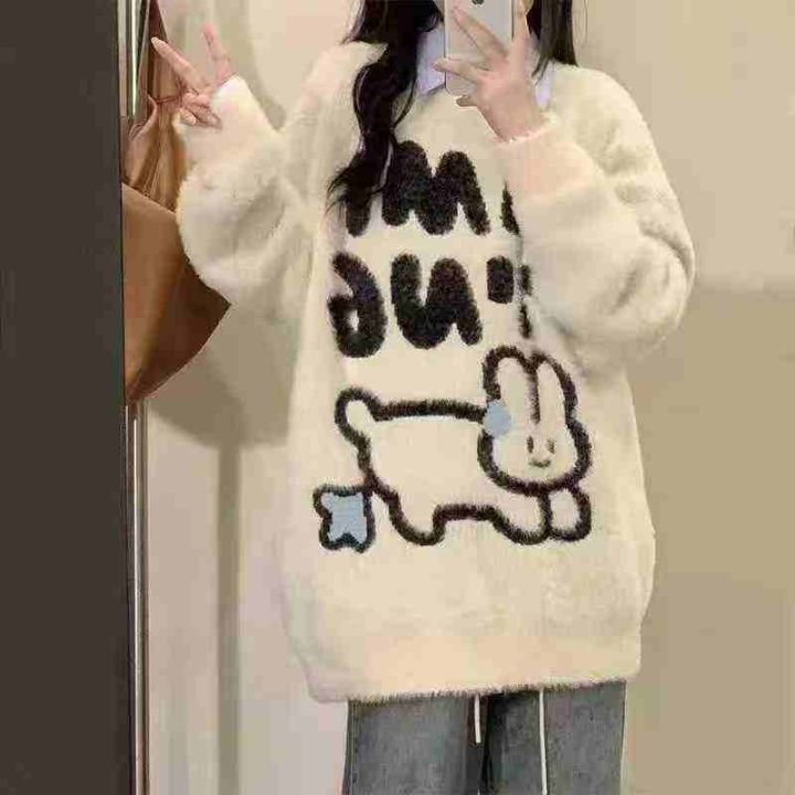趣味兔子水貂绒毛衣女加厚温柔日系毛茸茸软糯针织衫宽松毛衫内搭,均码,数量200件左右