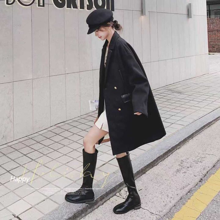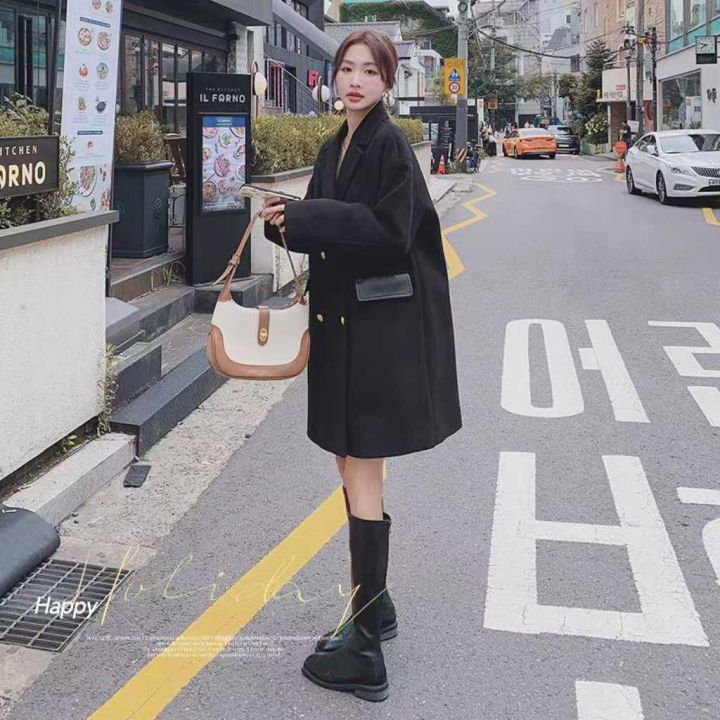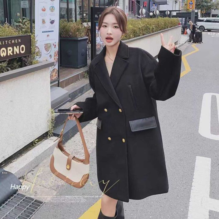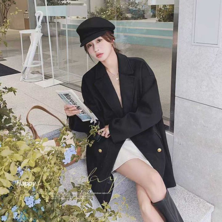 ① 赫本风大衣女冬学院风高级感黑色毛呢外套!整款单...