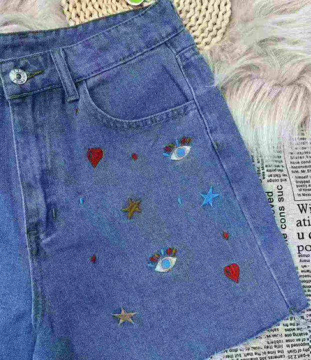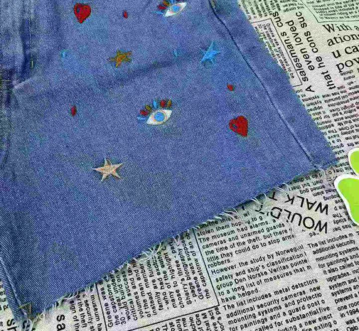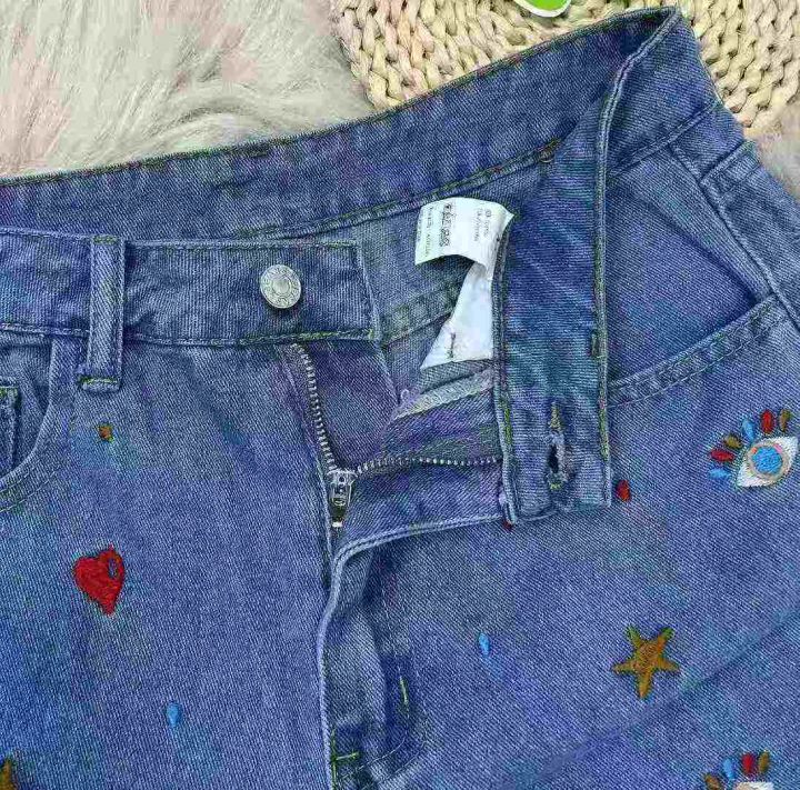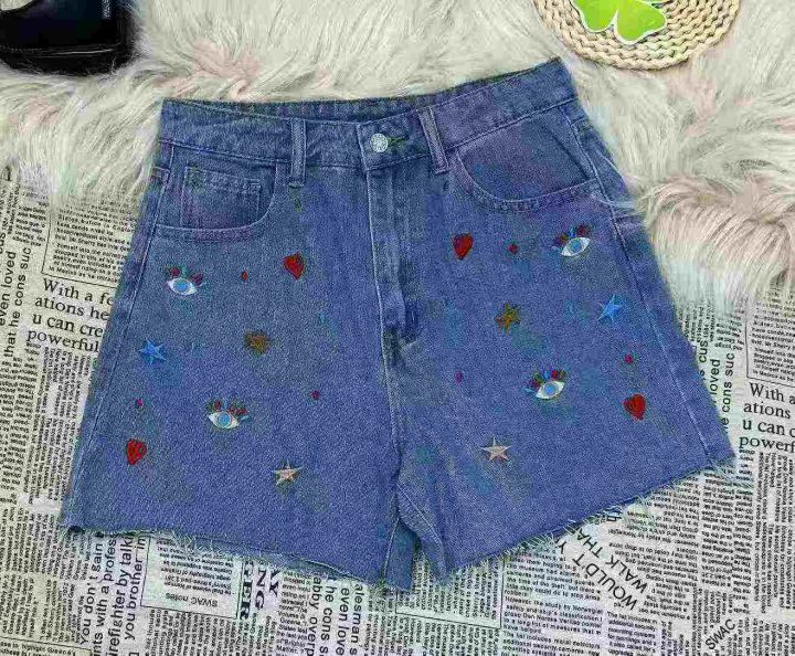 夏季新款。设计感刺绣爱心毛边女士牛仔短裤,数量250条,单款单色,尺寸S~XL码,工厂新货。独立拉链带原包装。 超低价7.9秒杀