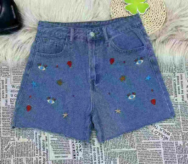 夏季新款。设计感刺绣爱心毛边女士牛仔短裤,数量250...