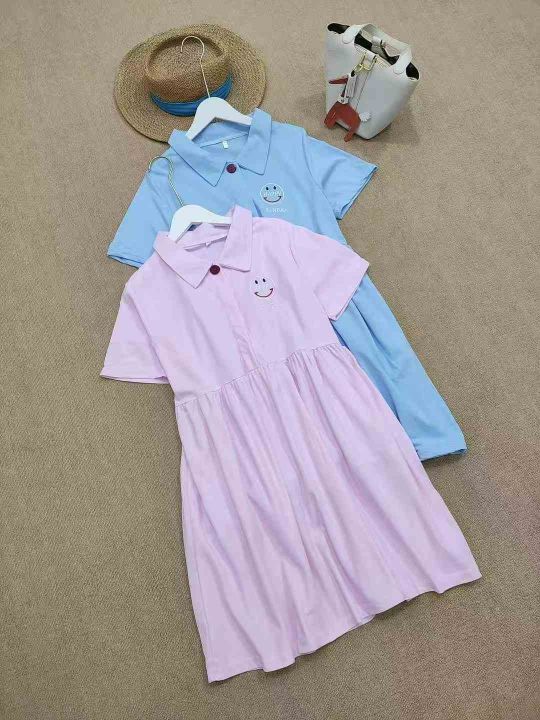 [月亮]:孕妈胖妹宽松遮肚Polo棉质连衣裙