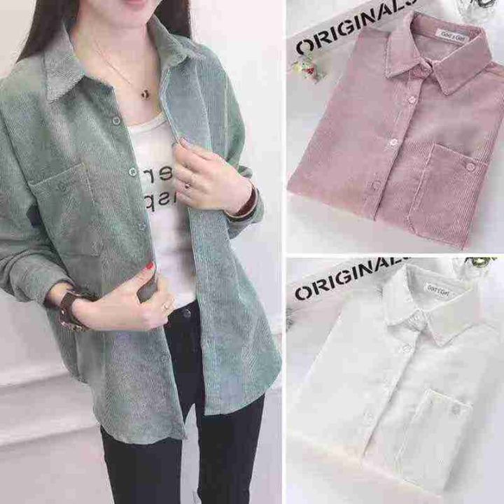 韩版宽松灯芯绒衬衫女2025新款长袖百搭口袋外套潮,独立包装,整款3色(绿色多)S-2xl码,2500件左右,7.9元清,分货➕1