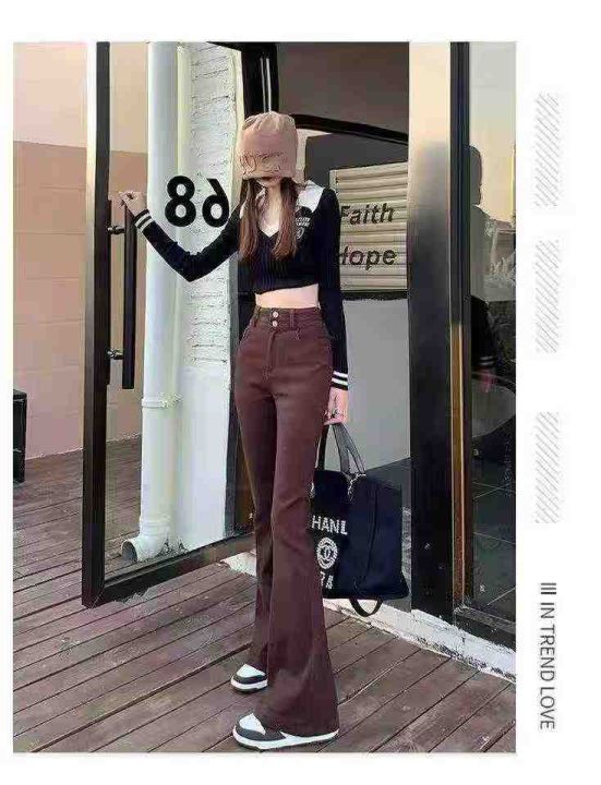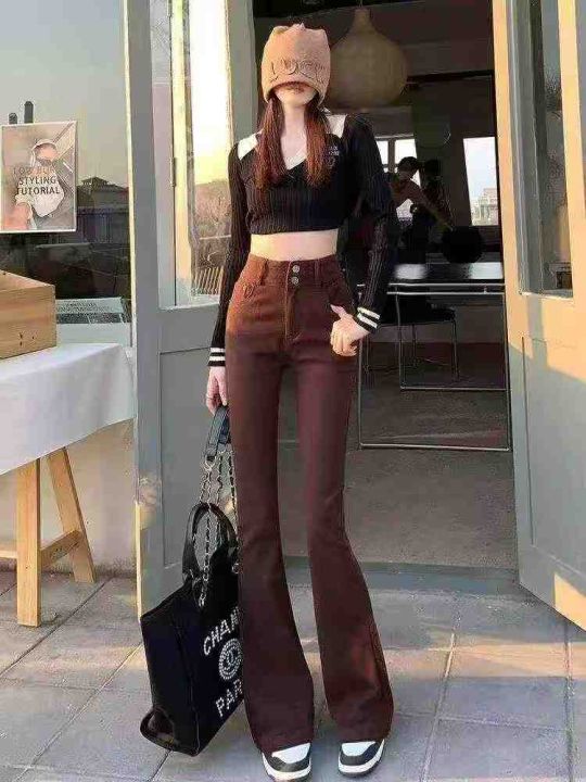 ☕️咖色高弹力喇叭牛仔裤女高腰显瘦弹力修身马蹄阔腿...